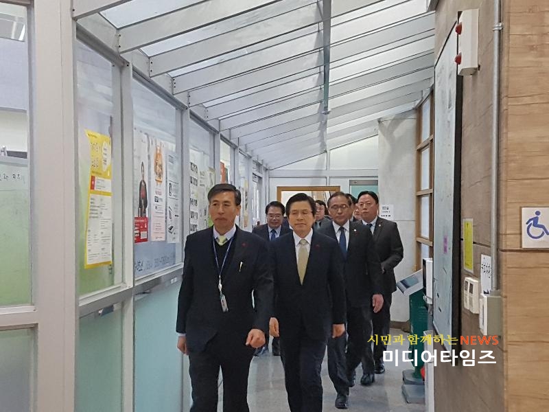 | 15일 황교안 대통령 권한대행이 소하 1동 행정복지센터를 방문하고 있다. <사진/ⓒ미디어타임즈> |