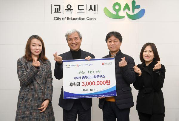 오산시는 지난 12월 11일 중부고고학연구소가 소외계층을 위한 이웃돕기 성금 3백만원을 기탁했다고 밝혔다.