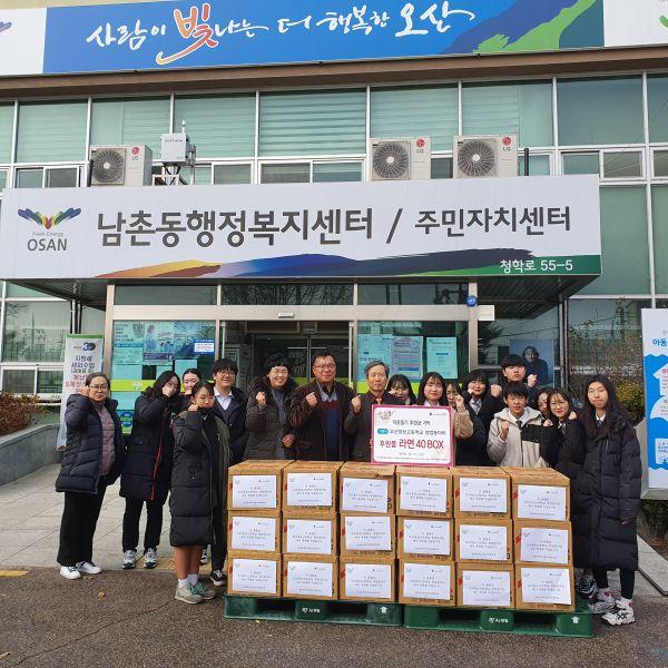 오산시 남촌동행정복지센터는 지난 11일 오산정보고등학교 창업 동아리 학생들이 저소득층을 위한 라면을 전달했다고 밝혔다.