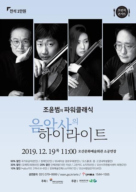 해설이 있는 브런치 콘서트 ‘조윤범의 파워클래식-음악사의 하이라이트’가 오는 19일 오전 11시 오산문화예술회관 소공연장에서 펼쳐진다.