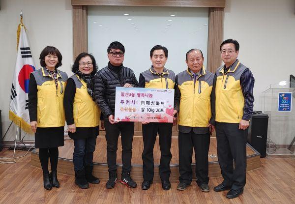고양시 일산3동은 관내 ㈜해성마트가 지난 11일 저소득 취약계층의 따뜻한 겨울나기를 지원하기 위해 행복나눔 쌀 10kg 20포를 기부해 훈훈한 연말 분위기를 더했다고 밝혔다.