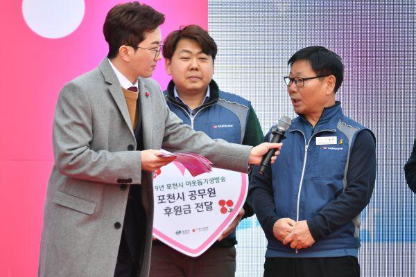 이어서 포천시 공직자들이 매월 급여 중 천원미만을 공제해 적립된 금액으로 1천여만원을 기부하는 전달식을 가졌다.