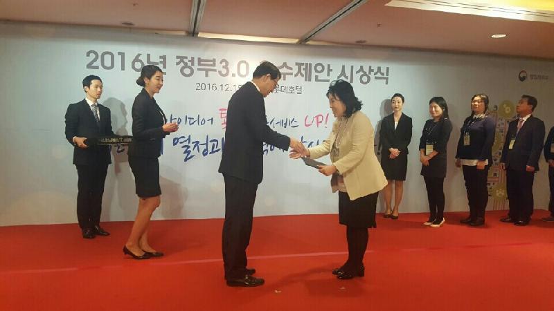 [미디어타임즈= 신정식 기자] 고양시(시장 최성)는 지난 15일 서울 소공동 롯데호텔에서 열린 ‘2016년 정부3.0 생활공감정책 우수제안 시상식’에서 제5기 생활공감정책 모니터로 활동하고 있는 박미현, 강애수씨가 대통령표창과 장관표창을 수상했다고 밝혔다.