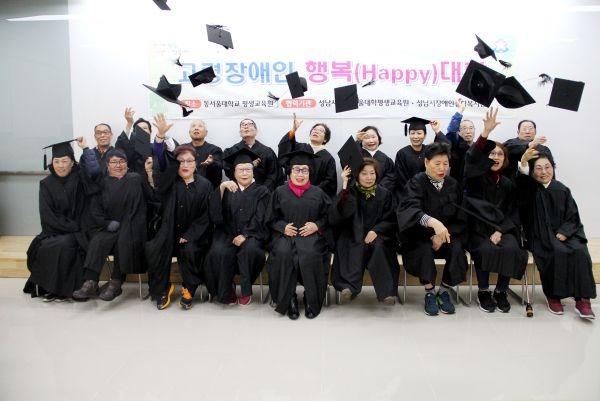 성남시는 13일 오전 11시 수정구 복정동 동서울대학교 평생교육원에서 ‘고령 장애인 행복대학 졸업식’을 했다.