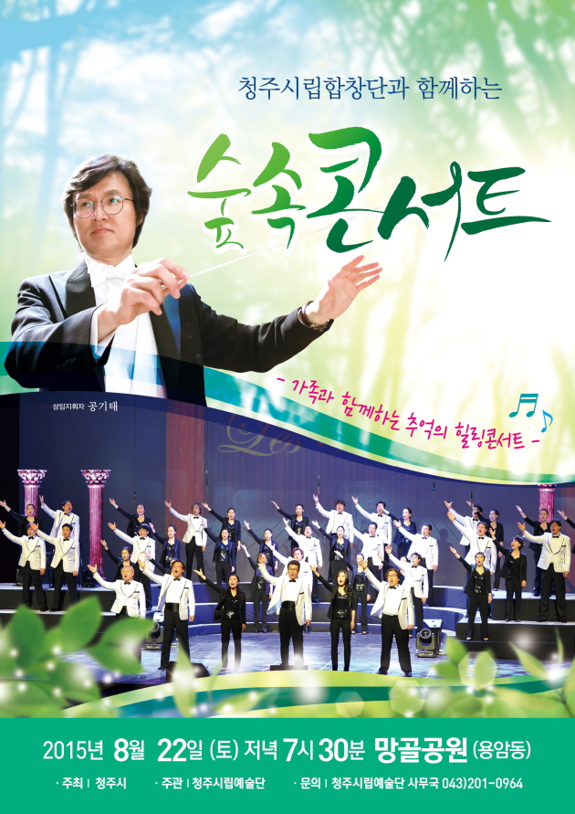 청주시 문예운영과(과장 전영철)는 청주시립합창단과 함께하는 도심 속의 ‘숲속콘서트’를 8월 22일(토) 오후 7시 30분 망골공원(용암동)에서 선보인다.