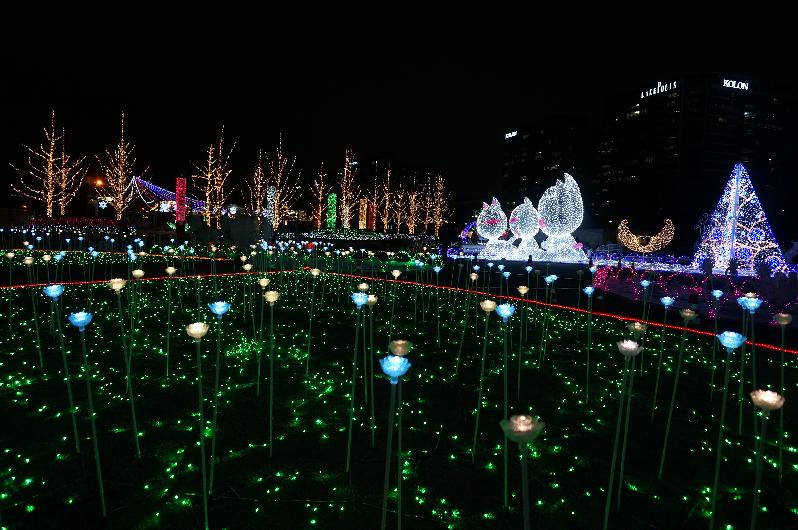 어둠이 내리면 호수공원 고양꽃전시관 광장, 주제광장, 메타세콰이어 길은 추위를 잊을 만큼 아름다운 꽃빛 세상으로 변신한다.