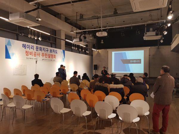 파주시는 지난 10일 헤이리마을 보·차도 보수공사 관련 주민설명회를 개최해 다수의 주민과 함께 공사 설명과 질의응답 시간을 가졌다.