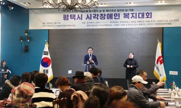 경기도시각장애인연합회 평택시지회는 지난 12일 국제웨딩컨벤션에서 제40회 흰지팡이날 및 제93주년 점자의 날을 기념해 ‘평택시 시각장애인 복지대회’를 개최했다.