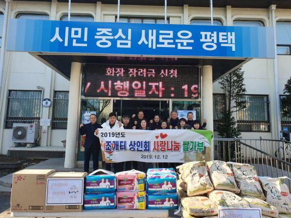 평택시 신평동 조개터상가번영회은 지난 12일 백미 10kg 60포와 50만원상당의 기저귀를 취약계층에게 전달해 달라며 신평동 행정복지센터에 기탁했다.