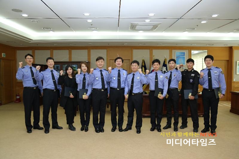 | 인천중부해경, 현장 안전관리 수범직원 초청격려 하고있다. <ⓒ미디어타임즈> |