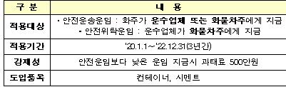 제도 도입 당시 시장 혼란에 대한 우려가 있어 컨테이너·시멘트 품목에 한해 3년 일몰제로 도입됐으며 2020년 1월 1일부터 시행될 예정이다.