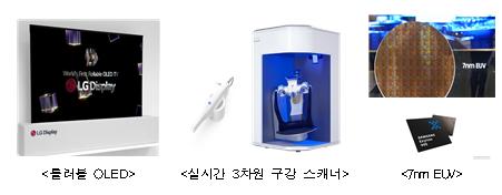대한민국 기술대상 수상제품을 한눈에 볼 수 있는 특별관에는 세계 최초의 65인치 롤러블 OLED 디스플레이와 세계 최고 수준의 정밀도와 속도를 자랑하는 실시간 3차원 구강 스캐너가 눈길을 끌며 올해 4월 세계 최초로 차세대 반도체 제품 양산에 성공한 EUV적용 7nm로직 공정기술을 포함해 대한민국 최고의 기술과 제품을 확인할 수 있다.