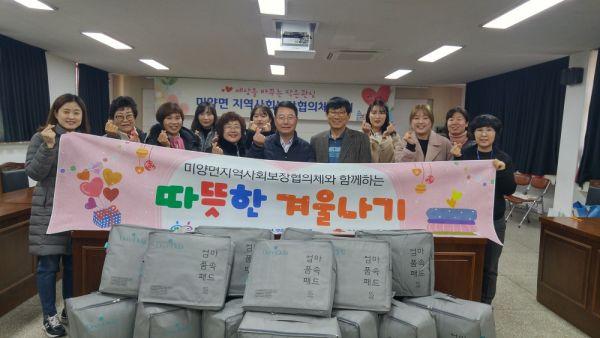 안성시 미양면지역사회보장협의체는 13일 특화사업인 ‘따뜻한 겨울나기 사업’의 일환으로 관내 저소득층 10가구에 발열이불 세트를 전달했다.