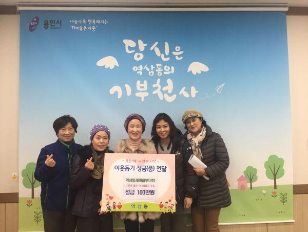 같은 날 역삼동 새마을부녀회에도 동사무소를 찾아와 어려운 이웃을 위해 써 달라며 성금 100만원을 기탁했다. 부녀회는 지금껏 무료급식소 봉사, 홀로어르신 밑반찬 전달 등 다양한 나눔활동을 해왔다.