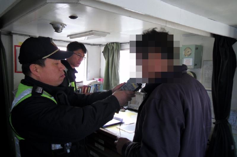 | 해상에서 해경이 선장들을 대상으로 음주측정을 실시하고 있다<미디어 타임즈> |