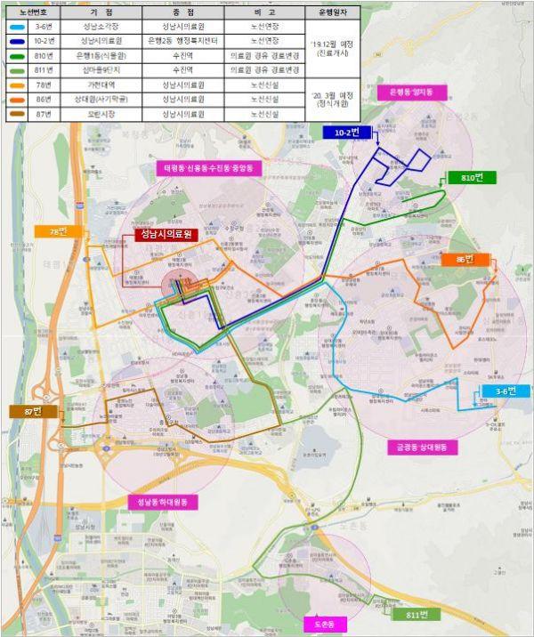 성남시는 성남시의료원 시범진료 및 정식개원 일정에 맞춰 마을버스 7개 노선 34대를 확충할 계획이라고 전했다을 밝혔다.