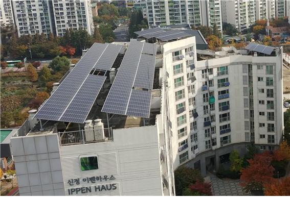 신정이펜하우스5단지는 옥상태양광뿐만 아니라 63가구의 개별 세대에서 베란다 미니태양광을 설치해 가정에서도 에너지절약을 실천하고 있다. 또한, 아파트 공용부문의 모든 조명이 LED로 교체됐고 센서조명을 통해 불필요한 조명은 자동으로 소등이 되어 전력을 줄이고 있다.