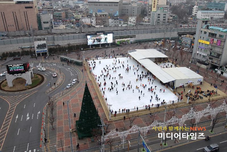 [미디어타임즈=문상수 기자] 인천 동구(구청장 이흥수)의 관문이자 최대 역세권인 동인천역 북광장에 조성된 화도진스케이트장에 젊은이들이 대거 몰려들며 원도심 동구에 활력을 불어넣고 있다.구에 따르면 지난 9일 개장 이후 10일 만에 이용객 1만명을 돌파하며 겨울스포츠의 명소로 선풍적인 인기를 선보이고 있다. 특히 지난 17~18일에는 주말을 맞아 가족단위 방문객들이 찾아와 회차 당 정원 400명 매진을 기록하며 눈길을 끌었다.또한 스케이트를 타면서 즐길 수 있는 전문DJ공연과 버스킹공연도 화도진스케이트장의 숨은 즐길거리로 입소문을 타며 가족과 연인들에게 즐거운 추억을 선사하고 있다.겨울방학이 다가오면 주말뿐만 아니라 평일에도 가족단위 방문객들이 찾아오며 일일 평균 1천명 이상 이용객을 유치할 것으로 기대된다.최대 400명이 동시에 이용할 수 있는 국제규격 1,800㎡(30 × 60m) 규모의 아이스 링크와 어린이들을 위한 썰매장(12 × 16m)이 운영되고 있는 화도진스케이트장은 오전 10시부터 오후 9시 30분까지 탄력적으로 운영되고 있으며, 1회 1시간 기준 스케이트화, 헬멧, 보호대 사용료가 포함된 1,000원을 내면 누구나 입장이 가능하다.또한 운영본부, 대여실, 매점, 휴게실, 화장실, 의무실 등 이용자의 안전과 편의를 위한 시설도 완비하고 있으며, 화도진 불빛축제와 연계된 화려한 불빛으로 겨울밤 낭만과 운치가 넘치는 명소로 거듭날 전망이다.한편 구 관계자는 “화도진스케이트장 방문객 증가로 수문통거리 및 전통시장 등 주변 상권도 활성화되고 있다”며 “겨울철 추억과 낭만을 느낄 수 있는 화도진스케이트장에 앞으로도 많은 관심을 갖고 찾아와 주시기 바란다”고 말했다.