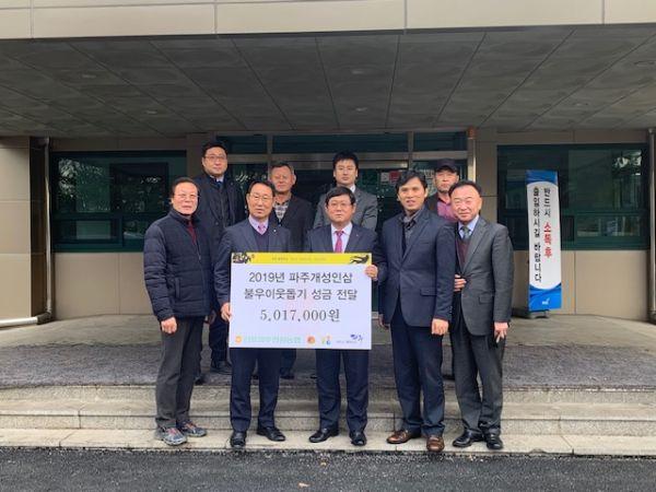 김포파주인삼농협은 지난 13일 파주시 저소득 계층을 위한 연말 이웃돕기 성금 501만7천 원을 파주시에 전달했다.