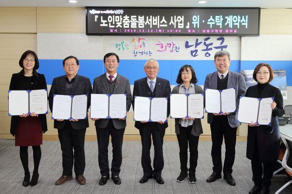 인천 남동구는 지난 12일 구청장 집무실에서 대한노인회인천남동구지회, 만수종합사회복지관 및 논현종합사회복지관 대표들이 참석한 가운데 ‘노인맞춤돌봄서비스 사업’ 지정 및 위탁 계약을 체결했다.