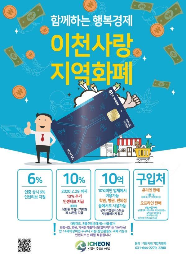 이천시가 연말연시 지역경제 활성화를 위해 2020년 2월 29일까지 이천사랑 지역화폐 인센티브를 기존 6%에서 10%로 확대하는 특별행사를 실시하기로 했다고 밝혔다.