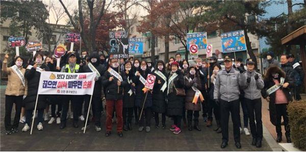 이날 캠페인에는 인천 중구보건소 직원을 비롯해 인천여자상업고등학교 청소년, 교사, 신포동행정복지센터 직원들과 통장자율회, 인천중부경찰서 하인천지구대 경찰 등 4개 민·관 기관의 45명이 참여했다.