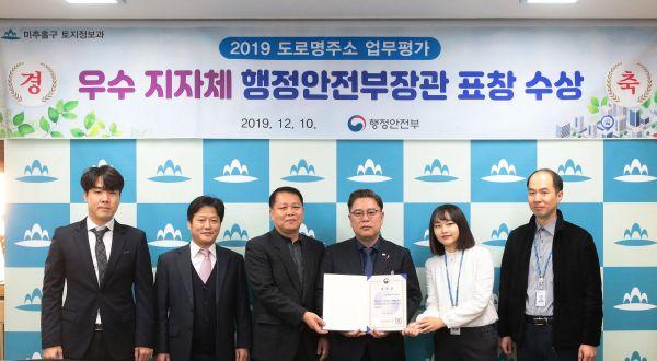 미추홀구는 전주교육대학교에서 열린 2019 도로명주소 업무유공 시상식에서 우수기관으로 선정, 행정안전부장관 기관표창을 수상했다고 16일 밝혔다.
