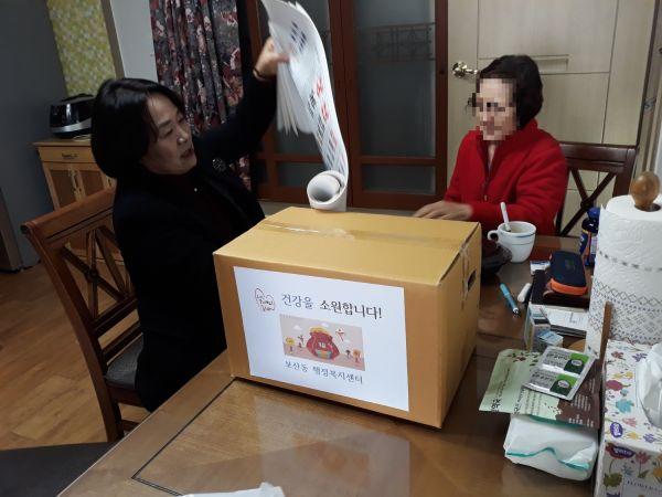 동두천시 보산동 윤영순 동장은 지난 12일 취약계층 가정방문을 이어나갔다. 기초생활수급자 독거노인 2가구를 직접 방문해 생필품을 전달하고 안부를 살피며 애로사항은 없는지 확인하고 보산동 맞춤형 복지팀에서 제작한 복지달력을 전달해 드렸다. 어르신들이 쉽게 알아보실 수 있게 커다란 글씨로 제작했고 복지급여 일정 등이 나와 있어 어르신들이 만족해 하셨다.
