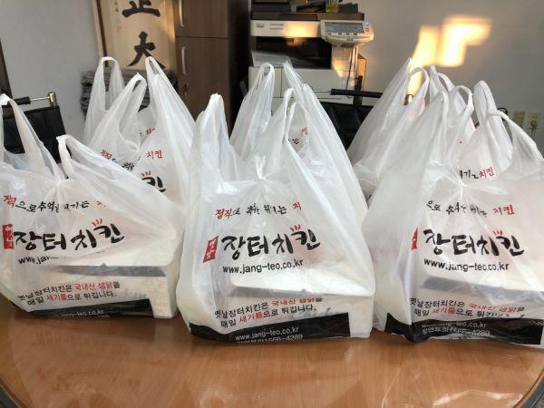 이날도 장터치킨 최수연 대표와 직원들은 신선한 기름으로 튀긴 치킨과 감자, 음료수를 준비해 정성과 사랑을 담아 포장 후 전달했다.