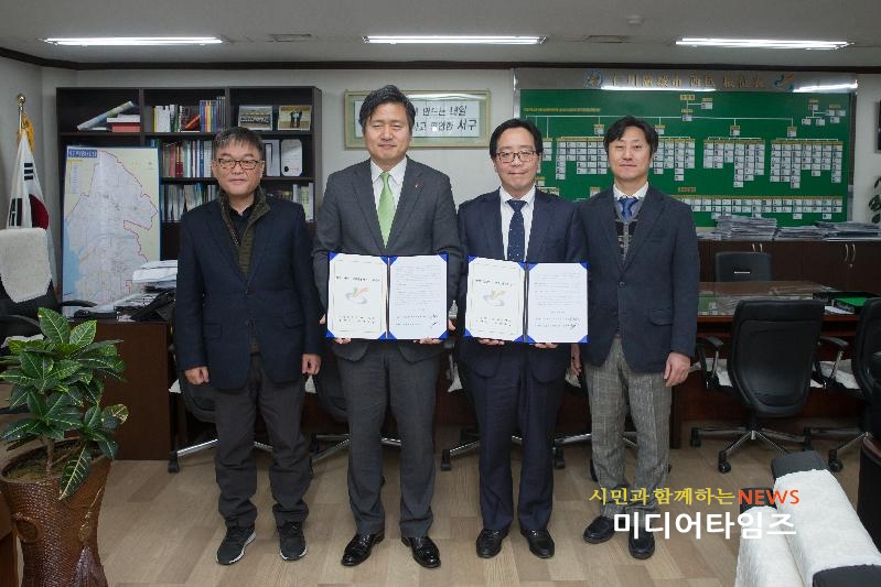 | 서구 정신건강증진센터 및 치매센터 위탁운영 협약 체결 후 기념촬영을 하고 있다. <ⓒ미디어타임즈> |