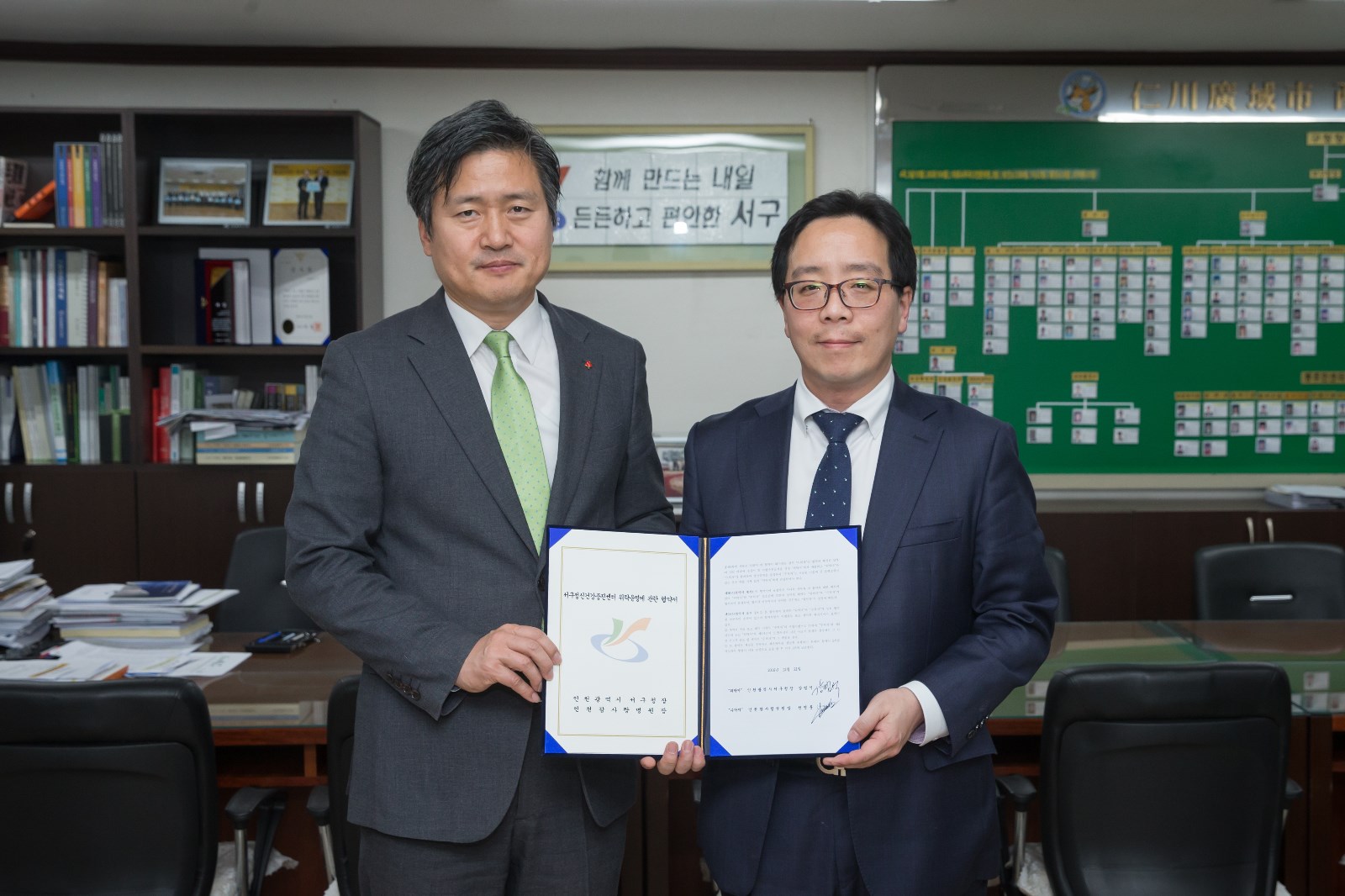 [미디어타임즈=김동일 기자] 인천광역시 서구(청장 강범석)는 지난 21일 구청장실에서 서구정신건강증진센터 및 치매센터의 전문적인 운영을 위하여 인천참사랑병원과 위탁운영 협약을 체결했다.이번 협약을 통해 2017년 1월부터 2019년 12월까지 향후 3년간 인천참사랑병원은 서구정신건강증진센터와 서구치매센터의 위탁 운영을 맡으며 더욱 체계적인 지역사회 정신건강관리 및 치매관리사업을 전문적으로 추진하게 된다.서구정신건강증진센터는 만성 정신질환자 관리 및 아동청소년 정신보건사업, 자살예방사업, 정신건강증진사업등을 수행하며 지역사회 정신건강관리 사업을 다양하게 진행하고 있다. 또한 서구치매센터는 지역 내 치매예방 및 교육, 조기발견 등을 시행함과 동시에 부양하는 가족의 부담감을 덜고자 치매어르신 주간보호서비스를 제공하며 전문적이고 체계적인 치매관리사업을 추진하고 있다. 이날 협약식에서 구 관계자는 “그동안의 경험을 바탕으로 투명한 센터운영과 다양한 노력을 통해 지역사회 내 정신건강 및 치매관리에 기여해주길 바란다”고 밝혔다.