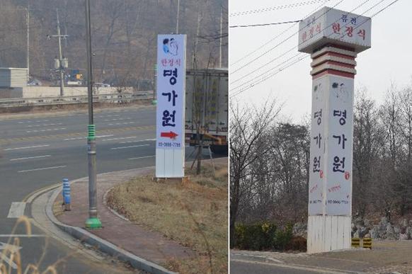 광명시가 광명시 노온사동 158-5번지 M음식점이 농지와 임야를 훼손해 불법주차장 사용 등 불법간판을 설치해가며 영업행위를 해오다 그것도 모자라 산 32-17(임) 번지 인근 도로 옆에 불법간판을 또 설치해가며 영업행위를 하고 있으나 시가 차일피일 미루고 있다는 시민들의 지적이다.