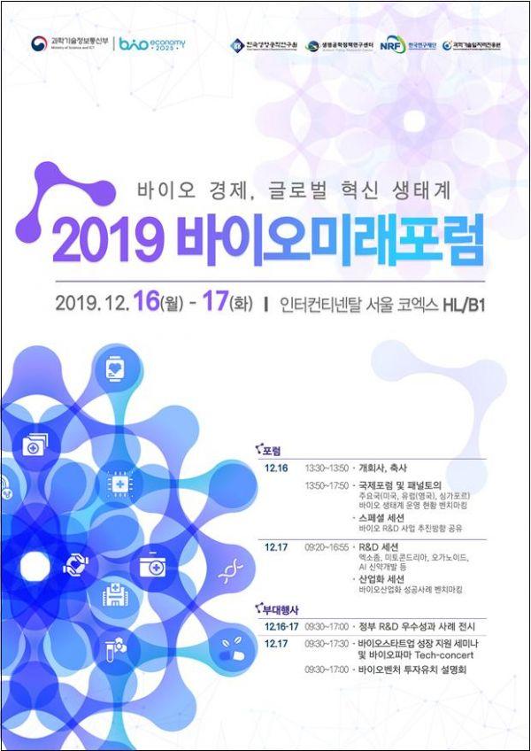 과학기술정보통신부는 16일부터 오는 17일까지 이틀간 코엑스 인터콘티넨탈 호텔 하모니볼룸에서 ‘2019 바이오 미래포럼’을 개최한다.