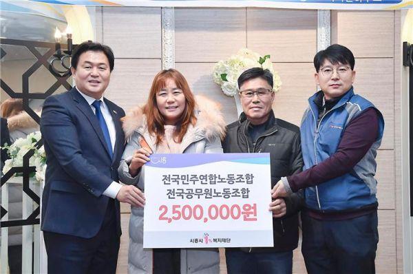 시흥시청 공직자들이 소속된 전국민주연합노동조합 시흥지부 및 전국공무원노동조합 시흥시지부는 지난 13일 지역사회 취약계층의 면학을 지원하기 위한 지역사회 공헌활동의 일환으로 장학금 250만원을 조성해 시흥 1% 복지재단에 장학기금을 기탁했다.