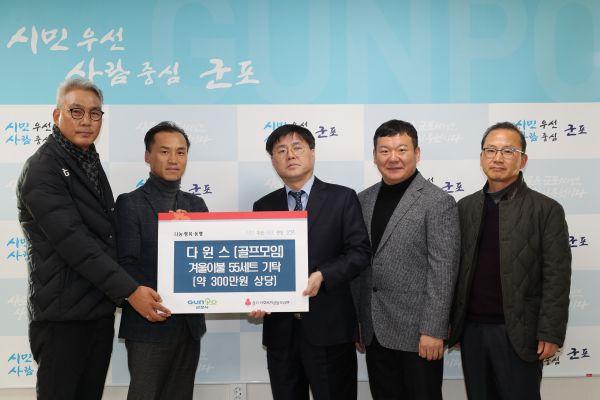 군포시에서 활동하는 골프모임 ‘다윈스’는 지난 16일 군포시청을 방문해 300만원 상당의 겨울이불을 전달했다.