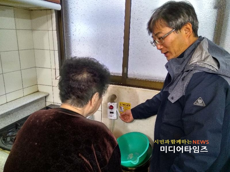| 취약 독거노인 타이머콕 설치 하고 있다. <ⓒ미디어타임즈> |