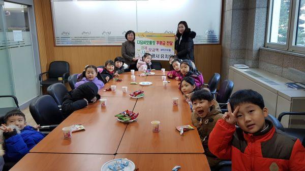 후원금은 원아와 학부모가 집에서 사용하지 않는 물건과 다양한 간식거리 등을 판매한 바자회 ‘경제나라’를 통해 마련했으며 17명의 원아가 직접 시청을 찾아와 후원금을 전달해 의미를 더했다.