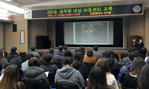 인천 서구는 간부공무원 및 아동친화도시 추진단 담당 공무원 등 400여명 대상으로 지난 16일 서구청 대회의실에서 ‘아동인권과 인권 감수성-아이들의 꿈이 있는 드림e서구 함께 만들어요’라는 주제로 아동권리 교육을 실시했다.