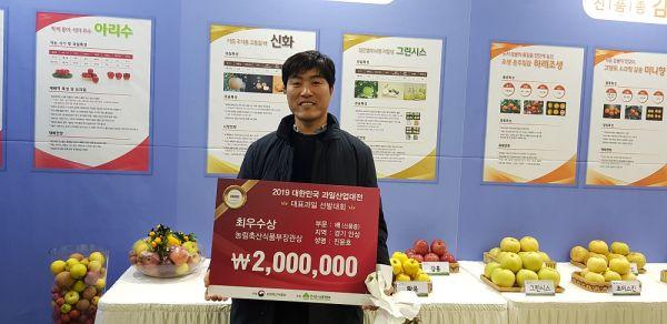 안성시 금광면 진윤호씨의 배가 ‘대한민국 과일산업대전 대표과일 선발대회’에서 최우수상을 수상하는 쾌거를 올렸다.