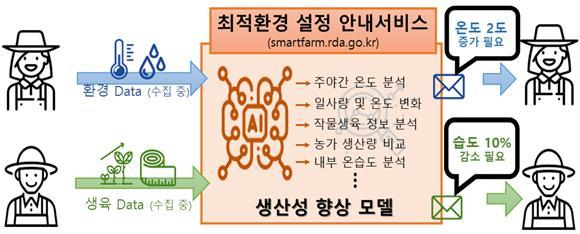 농촌진흥청은 생산성 향상 모델을 개발하고 생육 시기별로 분석한 최적의 스마트팜 환경 설정값을 문자메시지로 제공하는 서비스를 시작한다고 밝혔다.