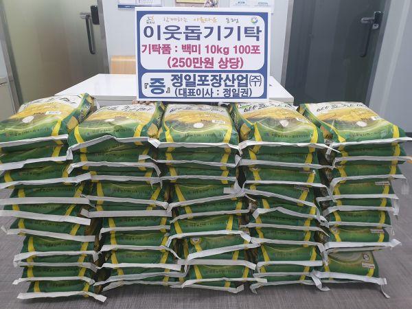 정일포장산업 정일권 대표는 지난 16일 송정동행정복지센터를 방문해 지역 내 어려운 이웃을 위해 사용해 달라며 쌀 100포를 기탁했다.
