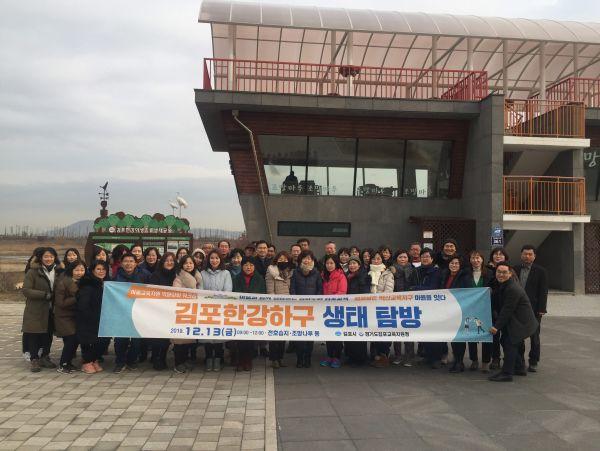 먼저, 김포한강하구생태탐방 프로그램에서는 관내 교장, 마을 교사들과 함께 김포지속가능발전협의회 환경분과 위원들의 안내로 한강조류생태공원에서 조류 관찰과 관련 체험 관련 시설을 둘러 봤으며 고촌읍 전호리에 위치한 습지로 이동해서는 버드나무 숲과 한강 하구 갯벌을 둘러보며 철책이 제거된 전호습지에 처음 발을 들여놓으며 학생들에게 김포에 대한 새로운 경험을 제공할 수 있는 장소라고 입을 모았다.