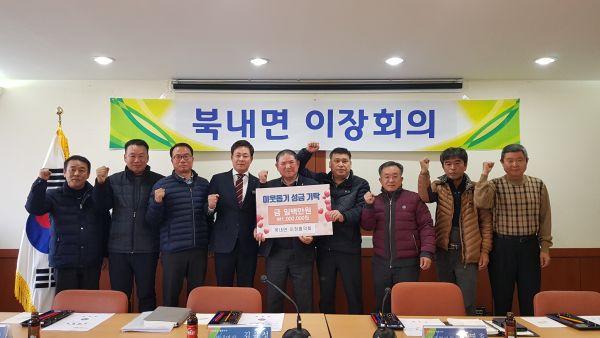 북내면 이장협의회는 연말연시를 맞아 저소득 소외계층에 전달해 달라며 이웃돕기 성금 100만원을 기탁했다.