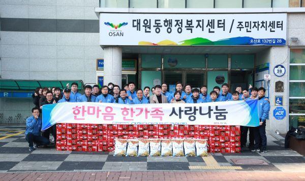 오산시 대원동행정복지센터는 지난 14일 이화다이아몬드공업 노·사에서 쌀 350kg, 라면 105박스 등 400만원 상당의 불우이웃돕기 물품을 기탁했다고 밝혔다.