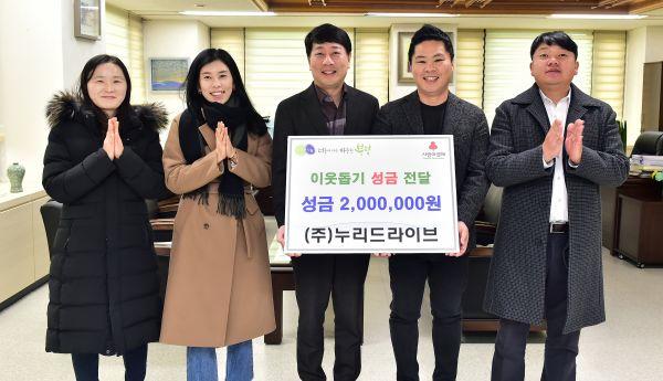 ㈜누리드라이브는 지역 내 위치한 대리운전 및 퀵서비스 관련 서비스업체로 주변의 어려운 이웃을 위한 성금을 기탁해 이웃사랑에 동참했다.