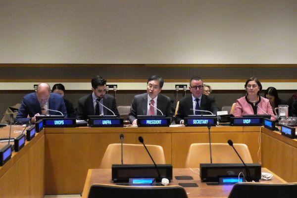 조현 주유엔대사는 지난 16일 오전 뉴욕 유엔본부에서 개최된 2020년도 의장단 선출을 위한 집행이사회 회의 주재를 끝으로 지난 1년 간의 우리나라의 유엔개발계획·유엔인구기금·유엔사업서비스기구 집행이사회 의장 활동을 마무리했다.