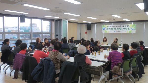 효성건강생활지원센터를 이용하는 지역주민 30여명이 참석한 이번 간담회는 2019년 프로그램 운영에 대한 개선사항을 논의하고 2020년 건강증진사업 운영을 위해 주민들의 실질적인 프로그램 요구도를 청취해 운영 전반에 반영하기 위한 목적으로 실시됐다.