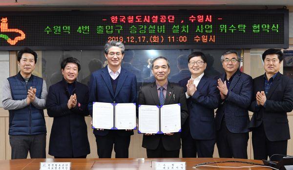 수원시와 한국철도시설공단은 지난 17일 수원시청에서 ‘수원역 4번 출입구 및 연결계단 승강설비 설치사업 위·수탁 협약’을 체결하고 협력을 약속했다.