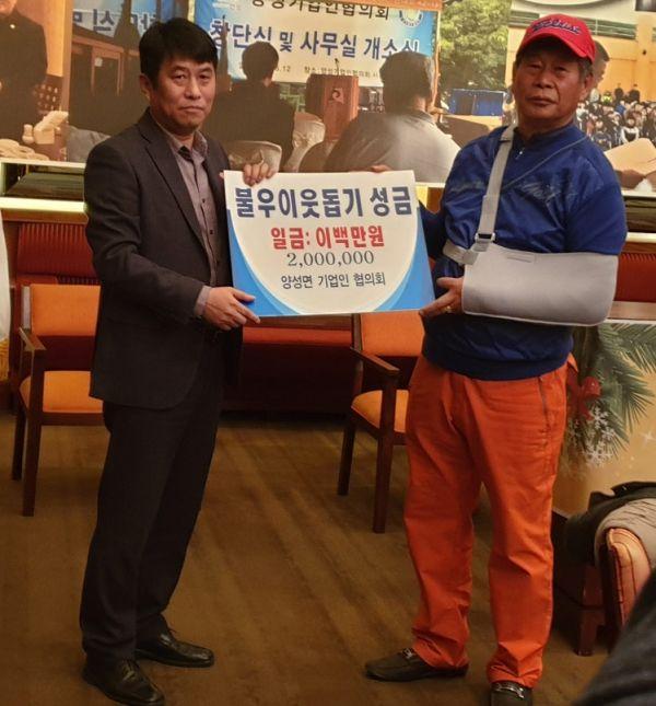 임한채 양성면 기업인협의회장은 “그동안 겨울철 이불 및 방한복 등 물품을 기부 해오던 것이 겨울 한시적이어서 이번에는 복지사각지대를 위해 연중 항시 사용할 수 있도록 지역사회보장협의체에 성금을 기부하게 됐다”고 밝혔다.