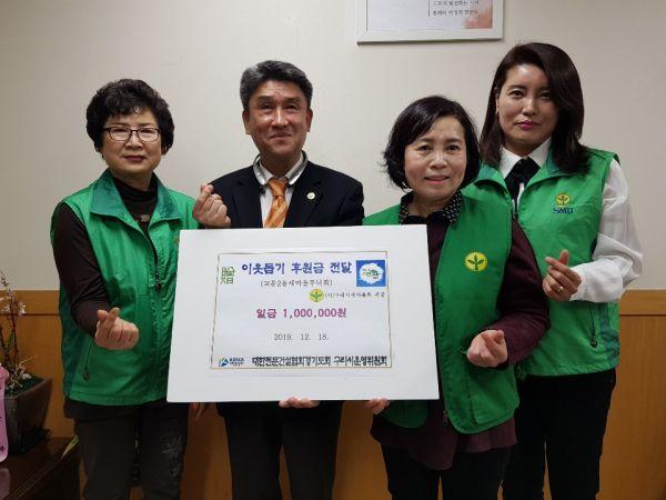 구리시 교문2동 행정복지센터는 지난 17일 대한전문건설협회 경기도회 구리시운영위원회가 구리시새마을회를 통해 교문2동새마을부녀회에 성금 1백만원을 전달했다고 밝혔다.
